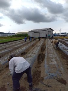 前日の雨でどうなるかと思いきや、農家の方々が畝にビニールをかけ足元が 濡れず作業しやすいように準備してくれていましたヽ(^。^)ノ